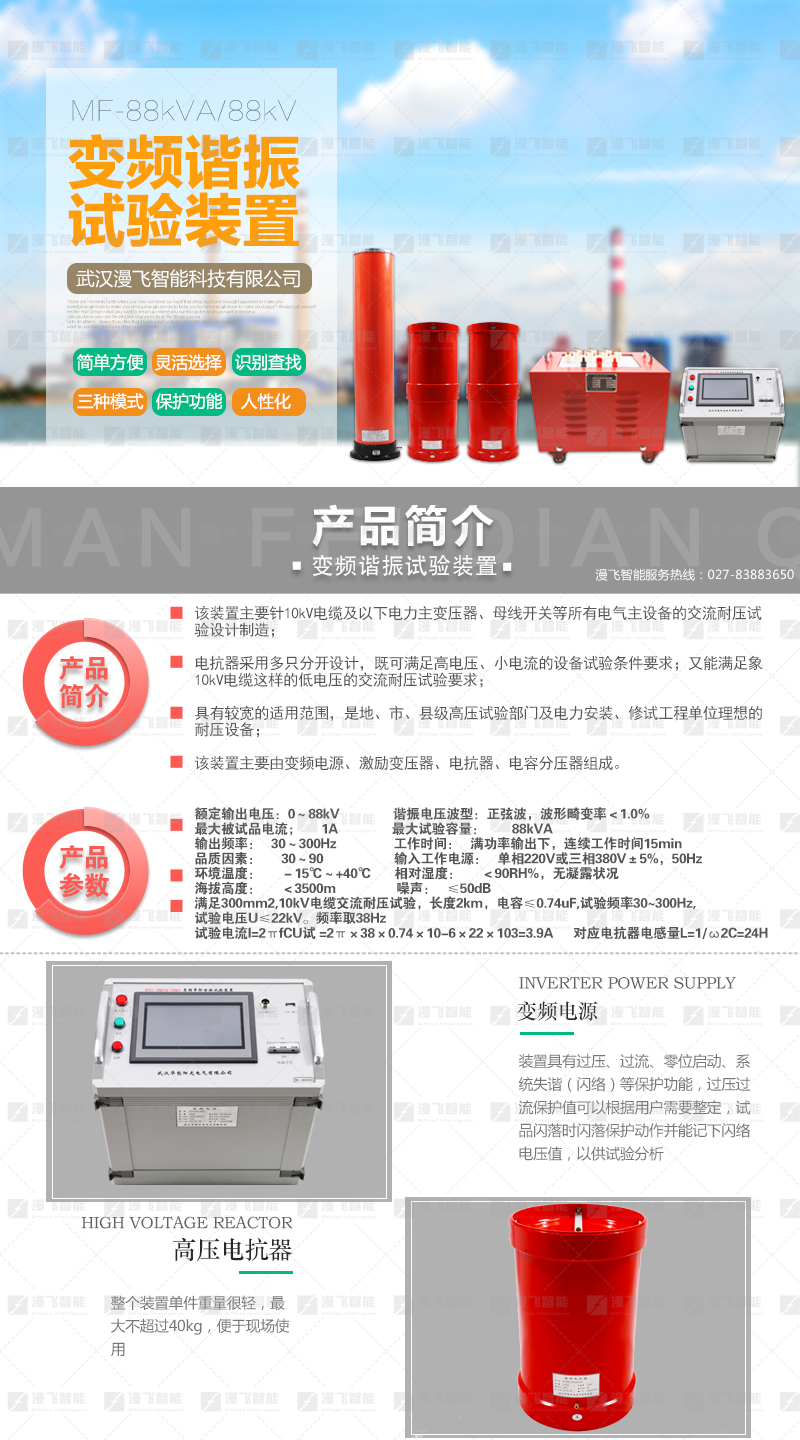 適用于10kV電纜交流耐壓試驗,10kV開關柜、變壓器交流耐壓試驗,35kV變壓器交流耐壓試驗